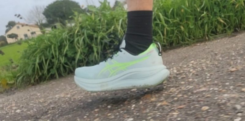 O Nimbus 28 vem com uma sola que, em algumas versões, aparece descrita como HYBRID ASICSGRIP, e isso costuma traduzir-se em boa aderência em estrada, inclusive quando a coisa está mais húmida. A ASICS também refere que esta versão ficou mais leve do que a anterior, cerca de 20 g, mantendo o conforto.
